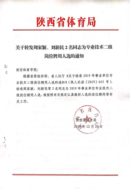 关于转发周家颖、刘新民2名同志为专业技术二级岗位聘用人选的通知