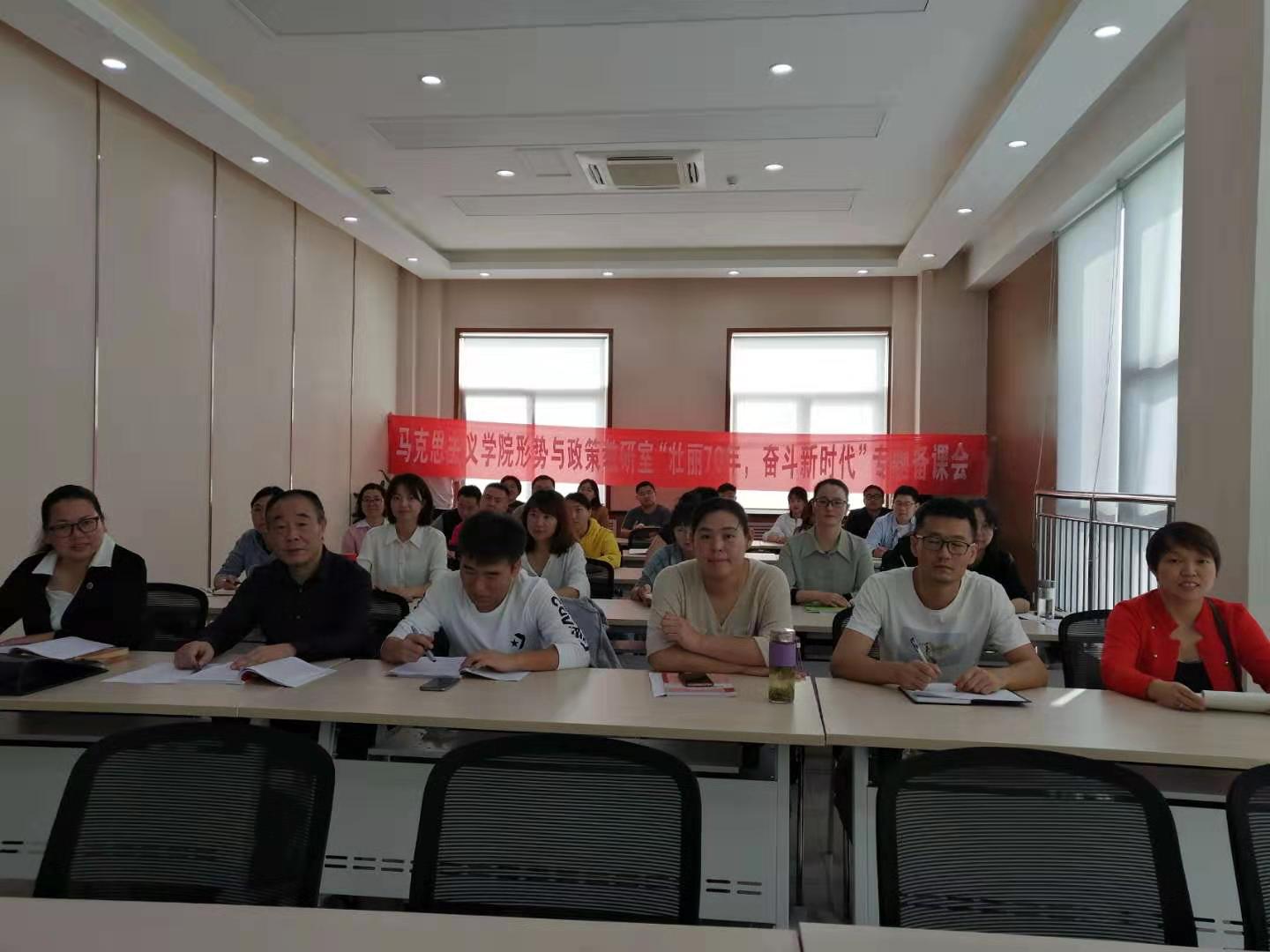 在祖国母亲70华诞之际,beat365中文官方网站马院形势与政策教研室的专兼职教师聚集在一起以“壮丽70年,奋斗新时代”专题备课会的形式来庆祝中华人民共和国成立70周年。