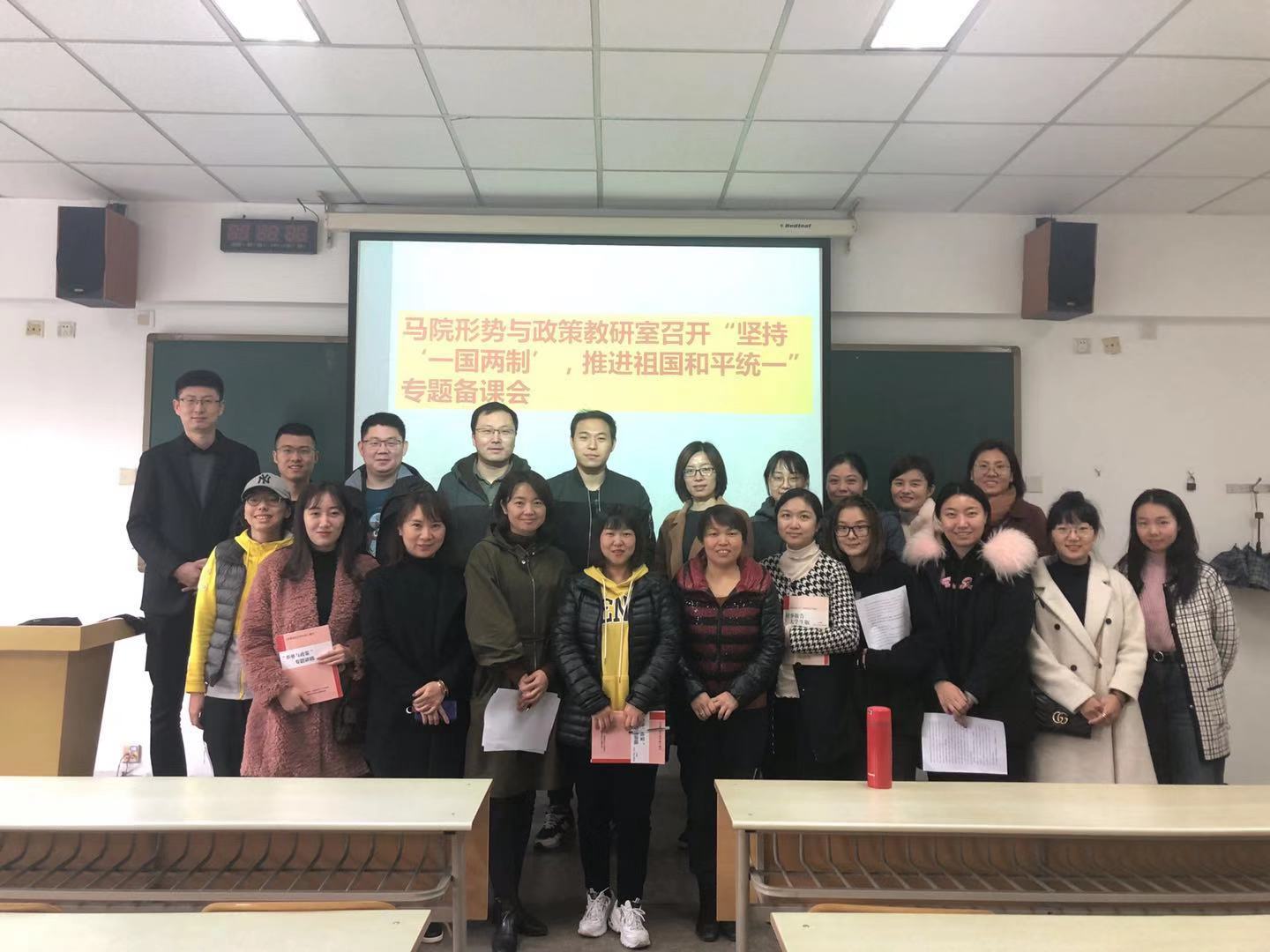 11月8日上午9:30,beat365中文官方网站马院形势与政策教研室在教学楼305教室召开“坚持‘一国两制’,推进祖国和平统一”专题备课会,马克思主义学院院长秋实教授出席了会议,会议由形势与政策教研室主任刘小容主持。