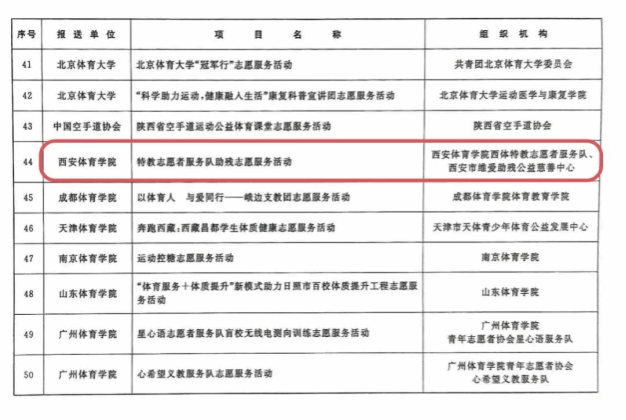 2023年9月,国家体育总局印发《关于开展2023年全民健身志愿服务优秀案例征集活动的通知》,各地各单位积极响应,报送了一批扎根基层、服务群众的全民健身志愿服务案例。经申报审核、专家评审、社会公示等环节,最终遴选出50个工作成效好、示范作用强的优秀案例。其中beat365报送的“特教志愿者服务队助残志愿服务活动”获得全民健身志愿服务优秀案例。