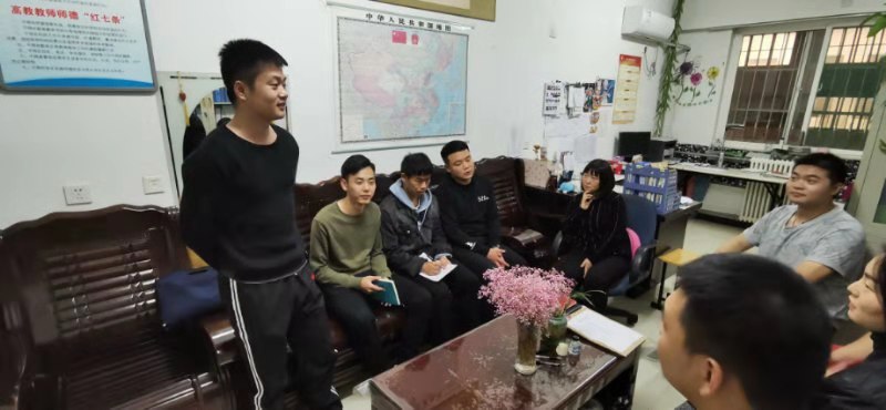 10月21日晚8点,学生第一党支部书记王华组织学生党员在年级办公室观看《榜样4》直播并进行座谈交流。