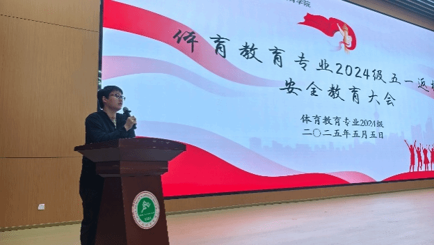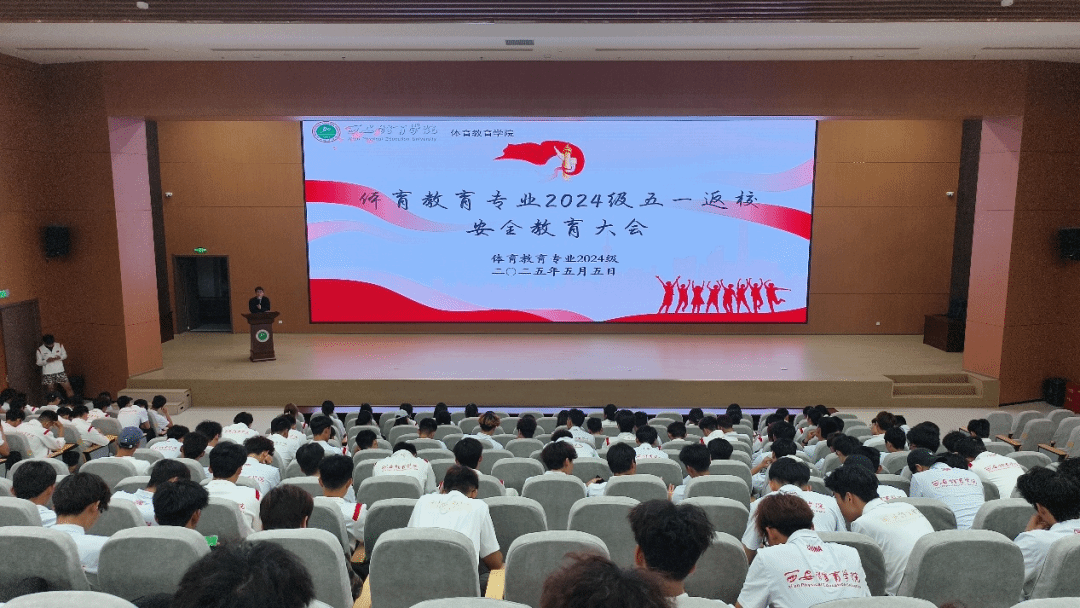 为深入贯彻落实校园安全管理要求,进一步强化学生纪律意识,帮助同学们调整状态,以饱满的精神面貌投入后续学习生活,5月5日晚,体育教育专业2024级在beat365中文官方网站鄠邑校区学术报告厅组织召开“五一返校安全教育大会”。会议由体育教育专业2024级辅导员管融资、袁景峰主持,体育教育专业2024级全体学生参加。