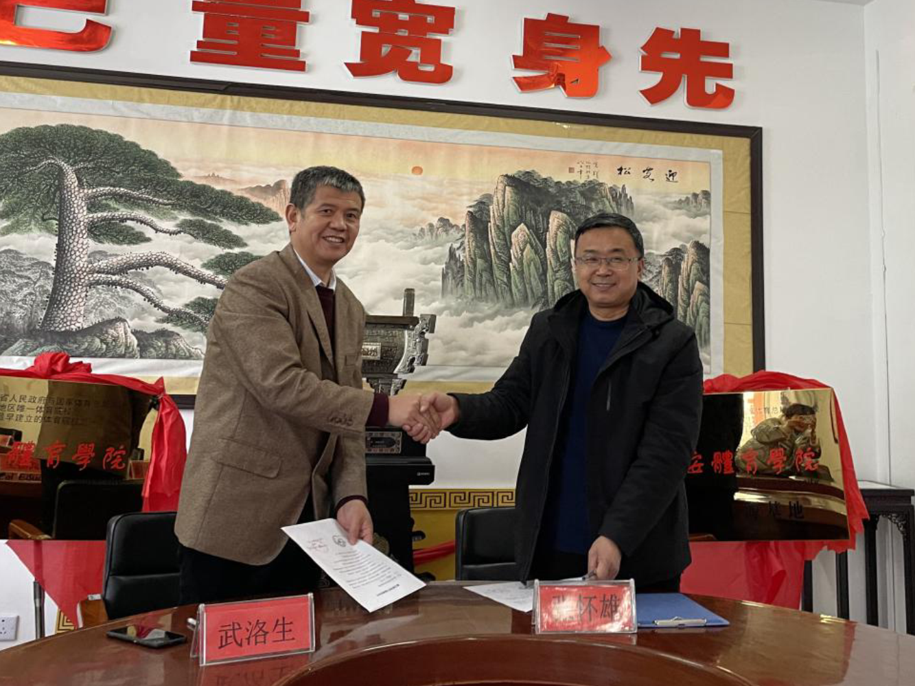 12月4日,运动训练学院院长武洛生、篮球教研室李洪强教授、见习辅导员陈德鹏一行三人赴榆林市与靖边县第三中学进行“优质生源基地”、“教育实习基地”签约挂牌仪式,参加此次活动的还有靖边县体育事业发展服务中心刘忠诚主任及靖边三中教师代表。
