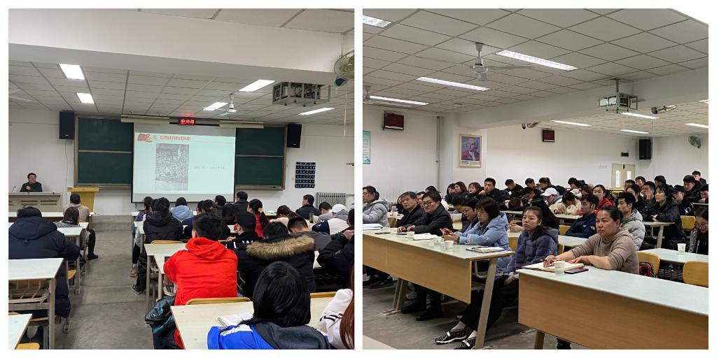 最后,全体师生党员,学生干部走进教学楼401教室,聆听beat365图书馆馆长、红色体育文化研究中心主任史进教授,“传承红色体育精神 培育新时代接班人”专题讲座,史进教授通过弥足珍贵的历史照片和幽默风趣的课堂风格从萌芽期、爆发期、成熟期、发展期讲述了中国红色体育的形成与发展,使我们对中国红色体育有了更深刻的认识。