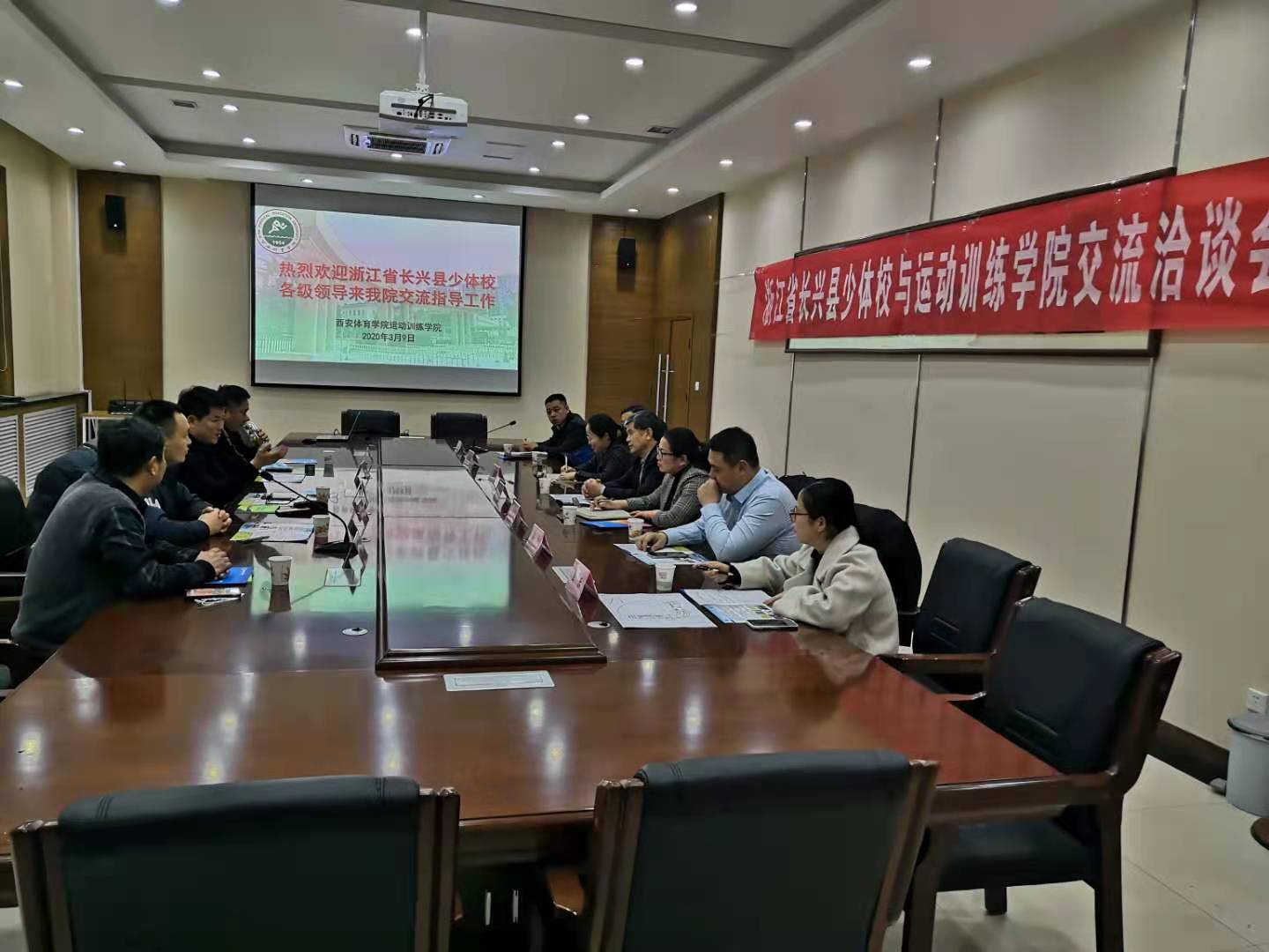 陈新国和习双兵分别将长兴县发展概况和长兴少体校的发展情况、发展理念及人才输出等方面进行了详细的介绍,并对于我院的发展给予了高度的肯定,希望以后进一步加强合作,逐步建立起常态化、制度化的合作关系,实现共同发展。