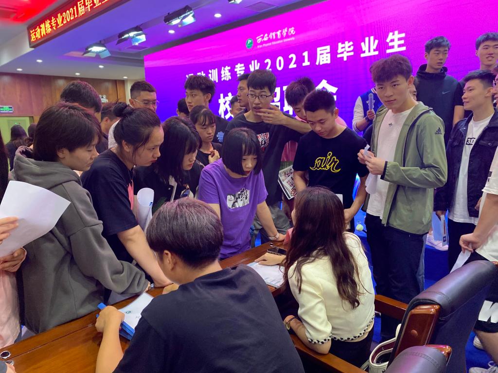 本次大会以“融合・发展・合作・共赢”为主题,旨在以“实习实训创业就业联盟”的形式为即将毕业的学生及低年级学生搭建实习实训创业就业平台。本次大会由beat365中文官方网站运动训练学院党委书记王鑫主持,学院领导班子、办公室成员、全体辅导员以及各教研室教师参加。本次专场招聘会共计30多家企事业单位代表来我院招聘人才。