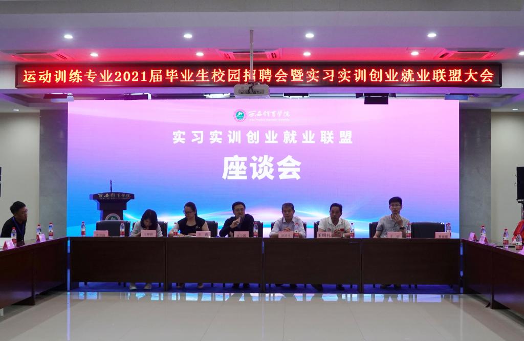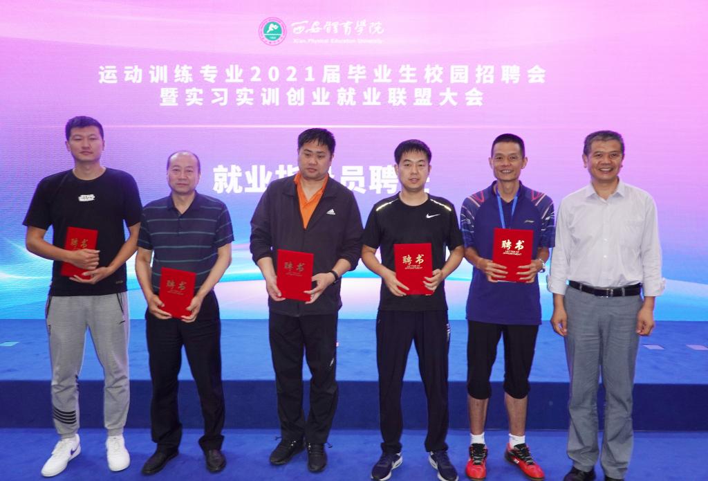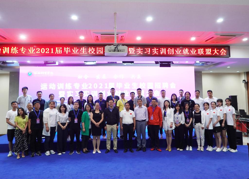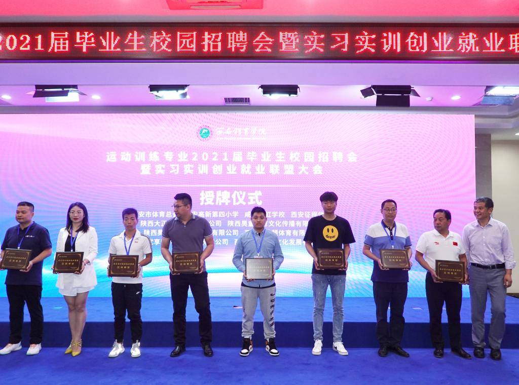 2021届毕业生校园招聘会暨实习实训创业就业联盟大会大会上,beat365中文官方网站运动训练学院与22家企事业单位签订了实习实训创业就业战略合作协议,并为合作单位进行授牌。同时,为14名专业教师颁发了聘任证书,加强实习实训创业就业的实际效果。