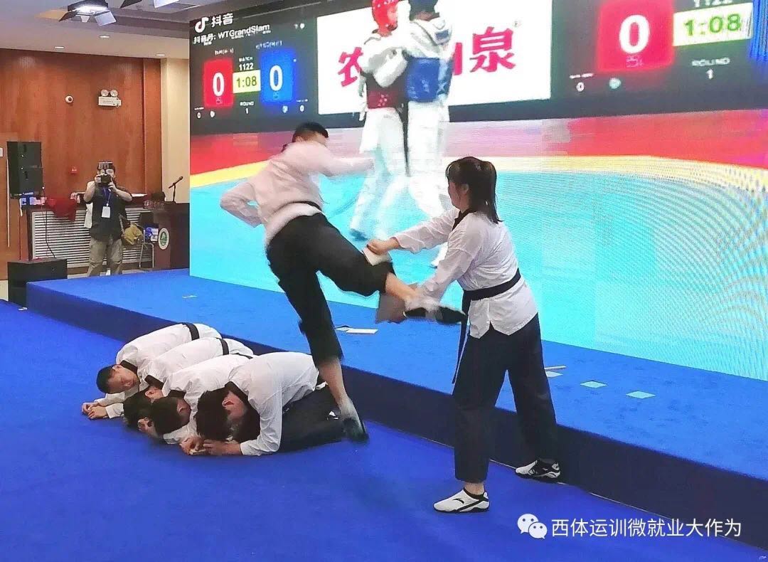 大会从艺术体操及跆拳道两场精彩纷呈的体育表演中拉开帷幕。大会伊始,运动训练学院党委书记王鑫对前来参加的各企事业单位负责人表示热烈的欢迎和诚挚的感谢。紧接着,通过运动训练学院宣传片使参会人员对运动训练学院发展、师资情况、专业分布、人才培养以及学生情况有了进一步的了解。后运动训练学院院长武洛生代表校、院领导向所有参会的招聘单位、应聘同学,向专程到现场指导招聘工作的各位领导,向关心支持我院发展、关心应届毕业生就业的各界人士,表示热烈的欢迎和衷心的感谢!表示此次大会是beat365中文官方网站运动训练学院创新创业实践教育改革的积极探索,它标志着beat365中文官方网站运动训练学院创新创业实践工作进入深度融合、互惠共赢的崭新阶段。