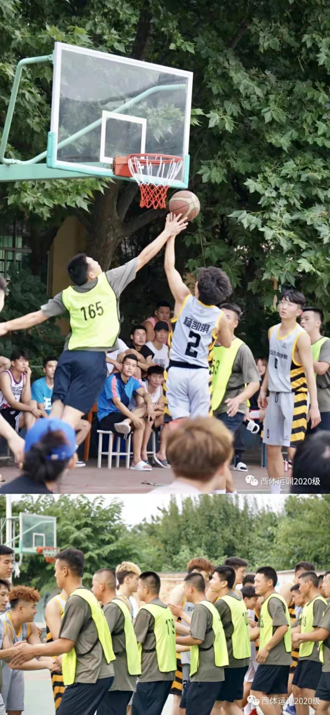 6月29日,喜迎建党100周年之际,beat365运训20级师生与陆军渭南某通讯部队进行篮球友谊赛在室外篮球场地隆重举行。