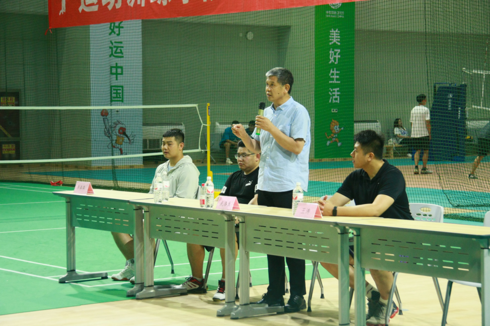 5月31日晚上6点,在手球馆羽毛球场举行本次羽毛球赛开幕式,全体运动员、赛事组委会成员,运动训练学院院长武洛生、辅导员王涛、辅导员李森森到场参加。