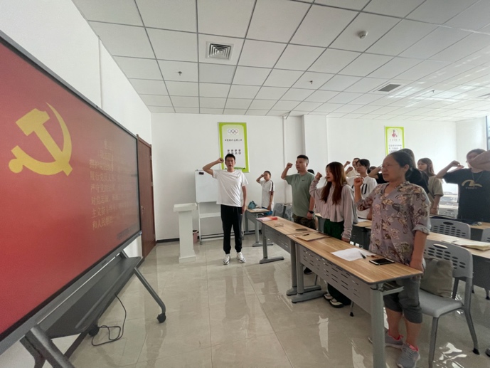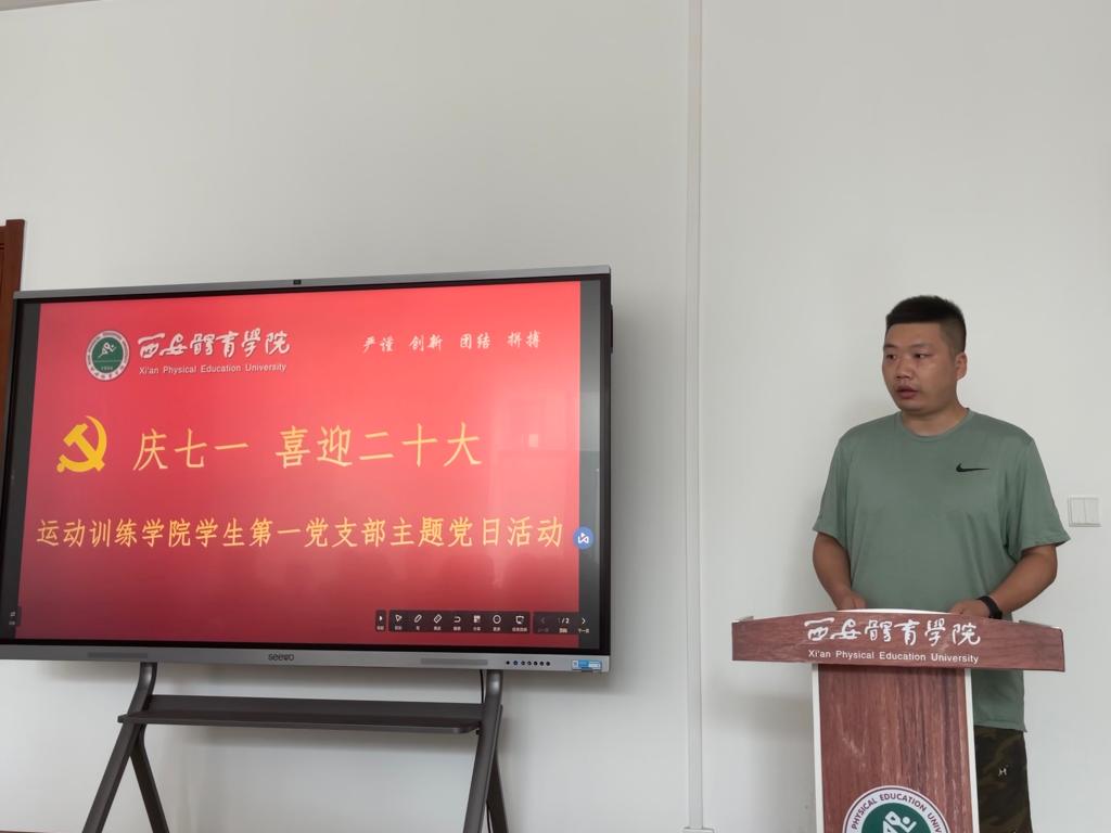 为庆祝建党101周年,讴歌党的光辉历程和丰功伟绩,弘扬伟大建党精神,激励全体党员以实际行动践行初心使命,2022年7月1日,运动训练学院2020级党委学生第一支部在beat365中文官方网站鄠邑校区橄榄球馆开展了“庆七一,喜迎二十大”主题党日活动。运动训练学院党委副书记张佩莉、运动训练学院2020级年级主任雷璇、辅导员黄环、25名学生预备党员参加了本次活动。