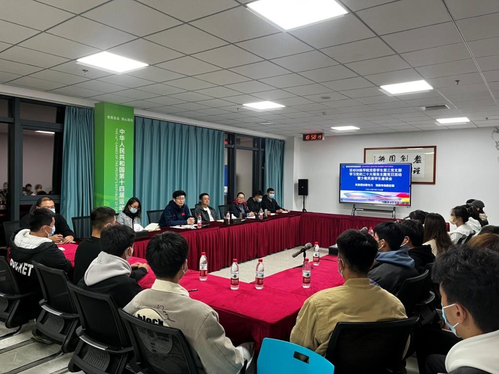 学习和宣传党的二十大精神,是我党当前和今后一个时期首要政治任务,为引导我支部广大师生深入学习和领悟党的二十大提出的新思想、新论断,做出的新部署新要求,铸牢中华民族共同体意识,10月27日晚7点在鄠邑校区301会议室,专门组织少数民族学生开展了 “民族团结聚伟力,强国有我新征程”主题党日活动。