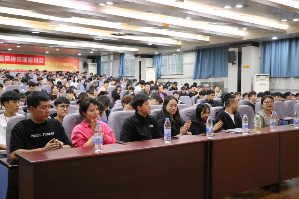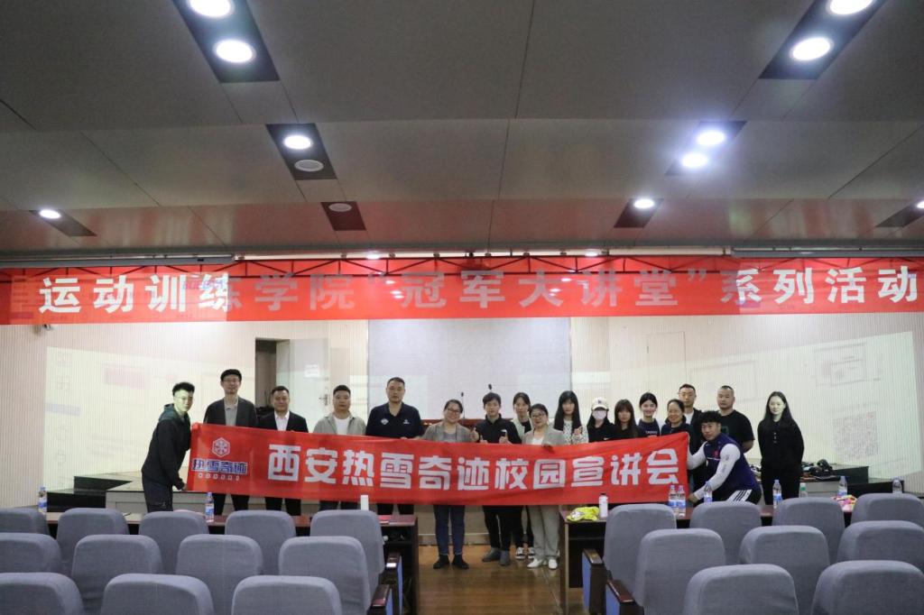 本次活动陈康携西安雪迹体育发展有限公司冠军团队一行7人走进我院与师生分享了“冠军”之路的成功经验。运动训练学院党委书记王鑫、副书记张佩莉、副院长郑峰、融创文旅西安雪迹体育有限公司人力行政负责人禹洁等出席活动,本期大讲堂由运动训练学院团委书记于昕主持。活动伊始,西安雪迹体育有限公司李宏宇老师,为我院师生详细的介绍了滑雪运动及滑雪运动在我国发展的历史和现状。