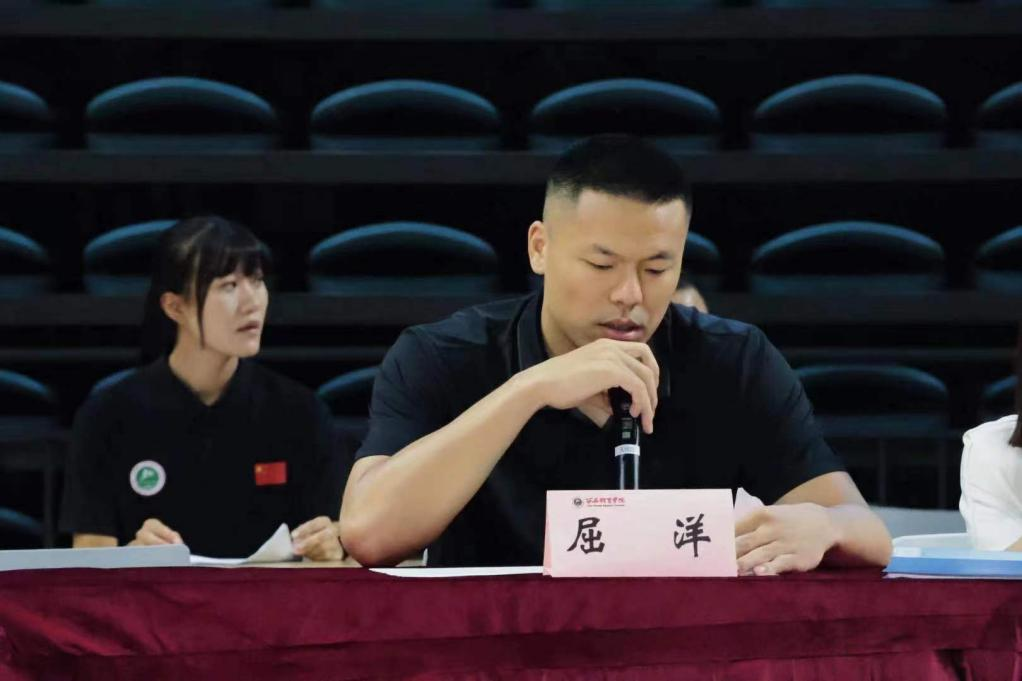 青年教师代表篮球教研室屈洋结合自身求学经历,勉励同学们要珍惜宝贵的大学时光,在青春的赛道上奋力奔跑,争取跑出超越自我的最好成绩。