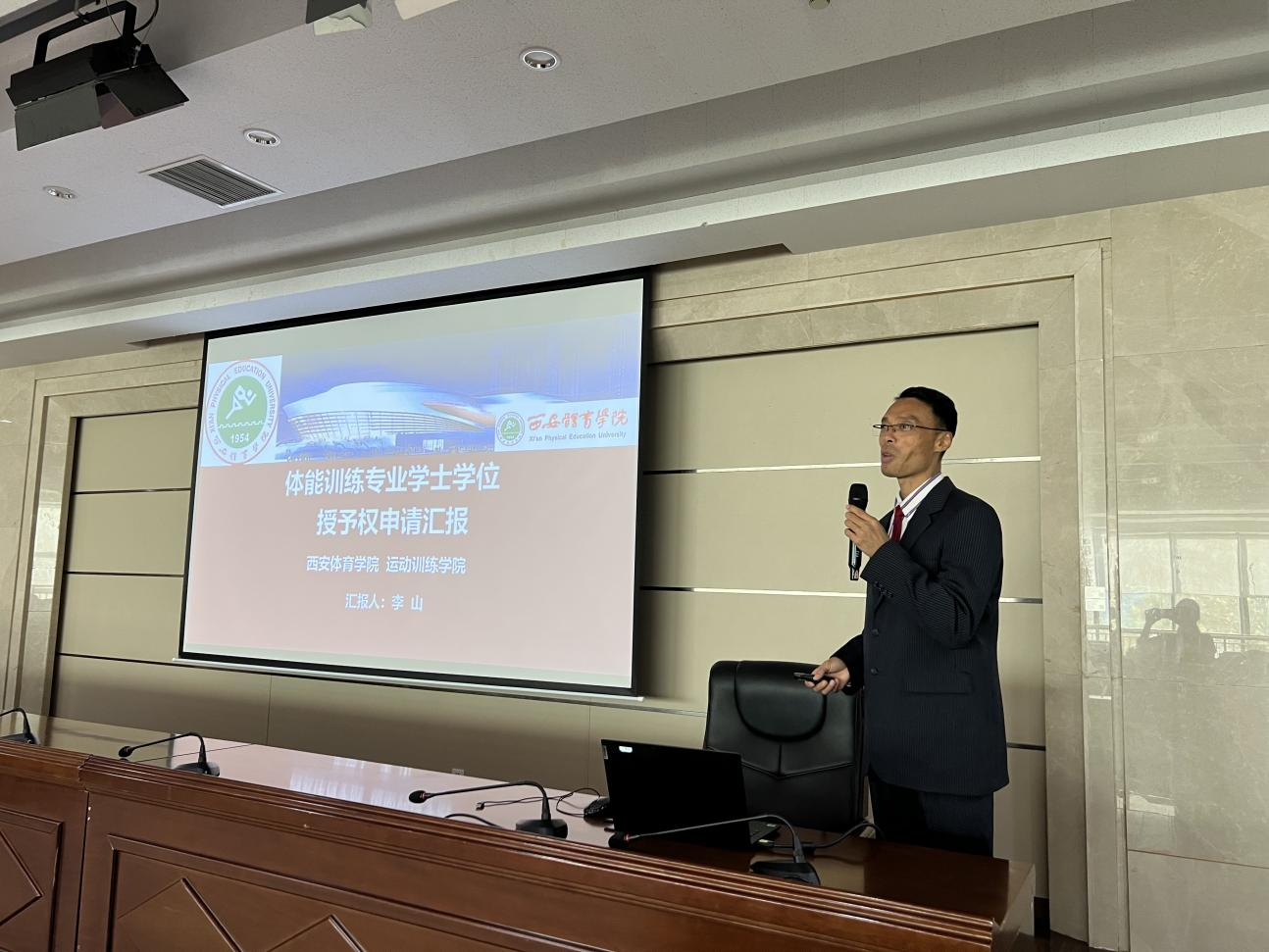 体能训练专业负责人李山教授向各位专家评审介绍了我国体能训练专业建设与发展的历史,也指出了beat365体能训练专业建设的必要性。同时,李山教授也从beat365体能训练专业所具备的优秀的师资力量、高水平的场地设施以及在可视化教学模式下beat365体能训练专业发展的未来设想等七个方面向各位评审专家进行了介绍。