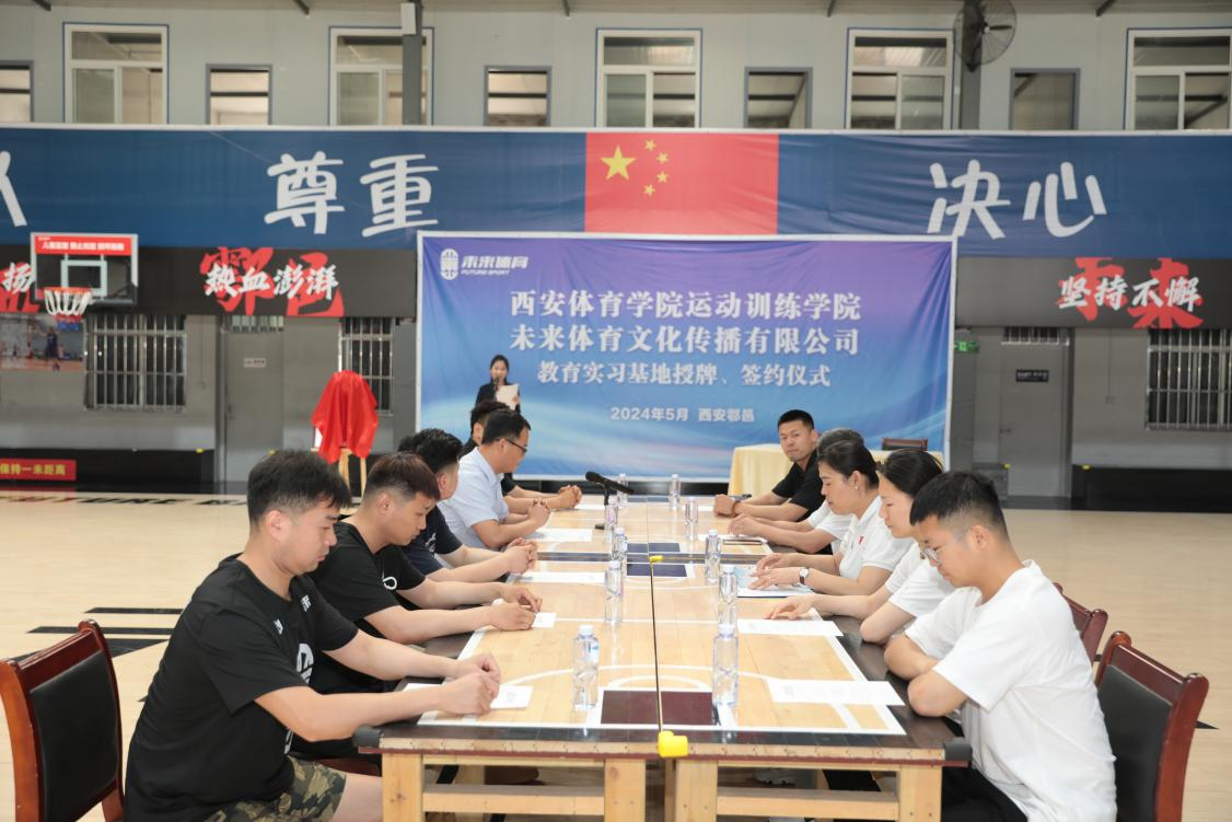最后双方领导签署教育实习合作协议,武洛生向未来体育文化传播有限公司授牌。并表示希望共同在人才培养、教育实践、就业创业等方面展开深度合作,共同探索体育人才培养的新模式、新路径,共同打造体育人才培养的新高地。