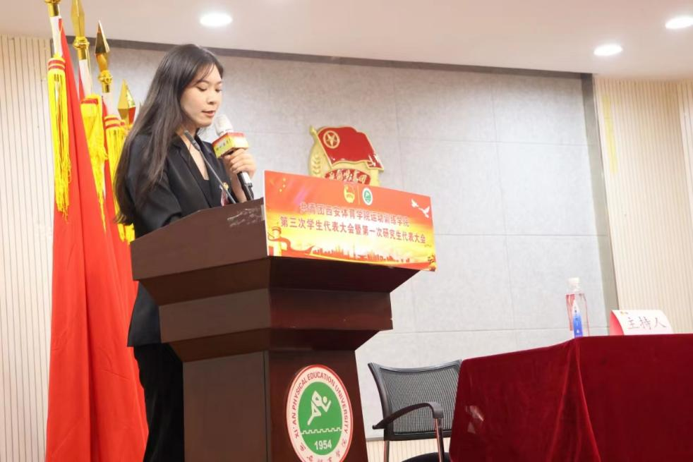 青春正当时,奋进当有为。踏上新征程,开启新篇章。为高举习近平新时代中国特色社会主义思想伟大旗帜, 全面贯彻落实党的二十大精神,加强和改进新时代我院学生会、研究生会工作,引领广大同学努力成为堪当民族复兴重任的新时代青年,6月19日下午,运动训练学院第三次学生代表大会暨第一次研究生代表大会在含光校区教学楼一楼报告厅顺利召开。