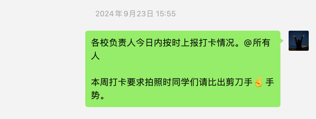 趣味打卡有落实认真实习我在岗SPORT为全面了解和掌握学生实习情况,确保实习教学质量,运动训练学院采取了一系列严格而有效的实习检查督导措施。其中,要求各实习基地实习生每周需在规定的时间内,完成指定打卡任务。趣味十足的打卡手势有效带动同学们认真落实打卡机制,不仅确保了学生们能够按时参加实习,还帮助学院实时掌握学生的实习进展和成效。接下来跟随小编一起看看21级实习生的花式打卡吧~